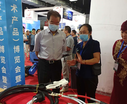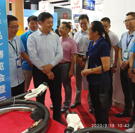 我公司張總為省領(lǐng)導(dǎo)介紹大功率充電樁用液冷線纜